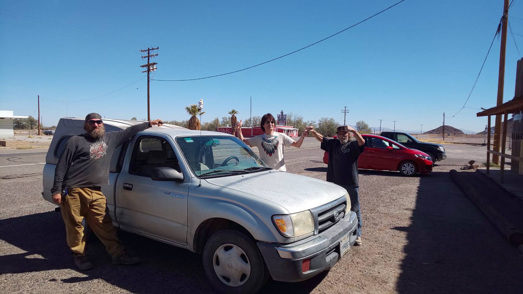 すぐ先のバグダッドカフェの近くでは知らないおじさん達にからまれ