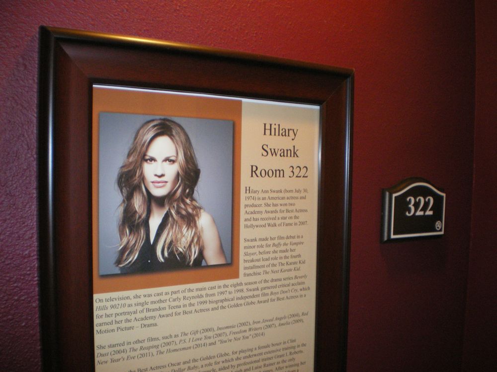 部屋のドアーには宿泊した映画スターの写真が。