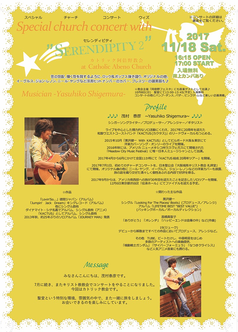 阿倍野カトリック教会 (大阪)教会主催「阿倍野フェスタ」 音楽コンサート・ゲスト