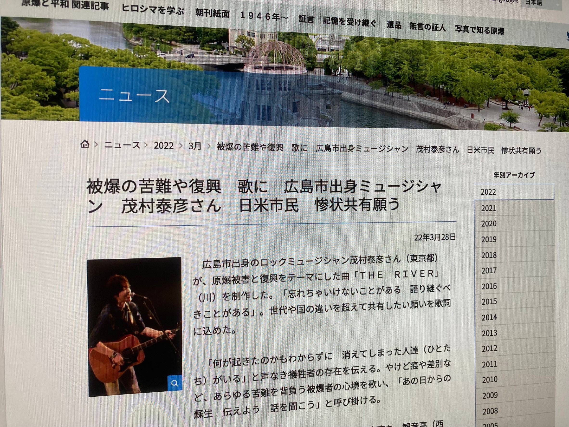 【 INFORMATION 】 茂村泰彦 The River 英文新聞記事