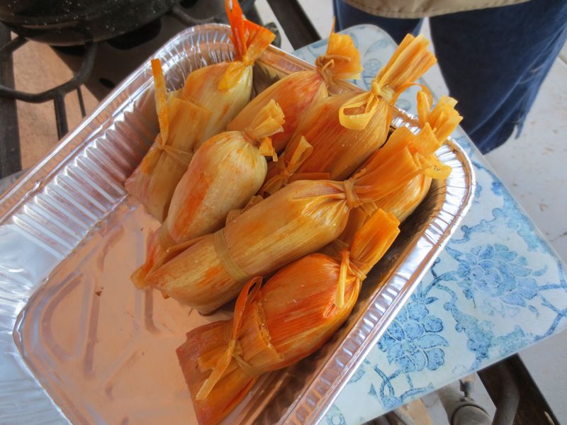 美味しい食事。右はタマレといって、トウモロコシの粉を練った物をその皮で包んで蒸したもの。