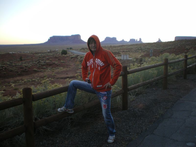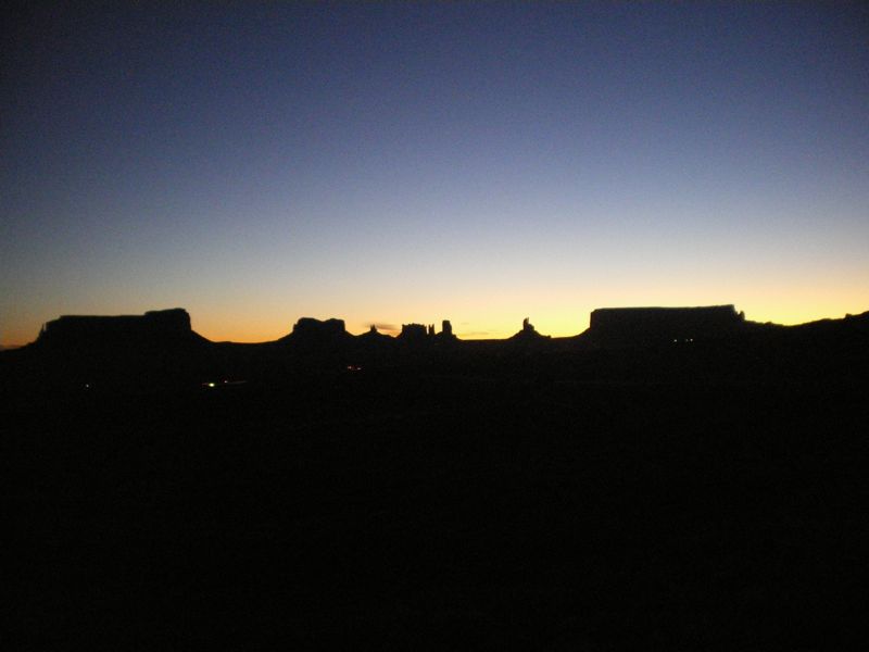 モニュメントヴァレー早朝、まだ暗いうちから起きて,ロッヂのバルコニーからモニュメントヴァレーを見る。