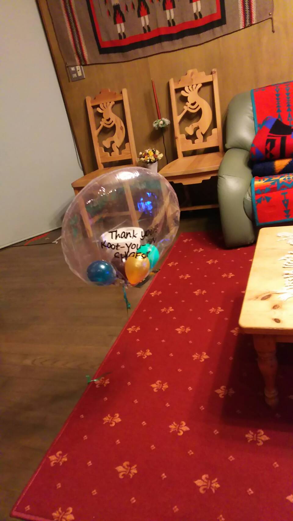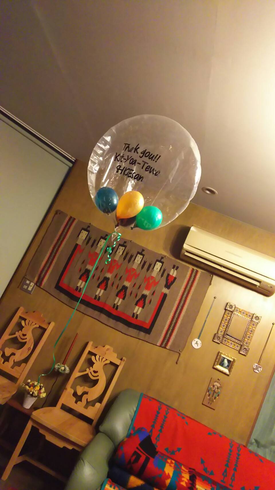 12月の伝承ホールでのライブの時送られて来て、ロビーに飾られてた風船で出来たサボテン君。ライブ後持ち帰り二階の仕事部屋に置いていたんですが、本体は空気が抜けてしまい、この部分だけ外して部屋で遊ばせてました。勝手にふわふわ浮いてるからね。
