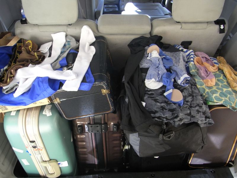 昨夜それぞれ洗濯したようですが生乾き。車内で乾かそう。